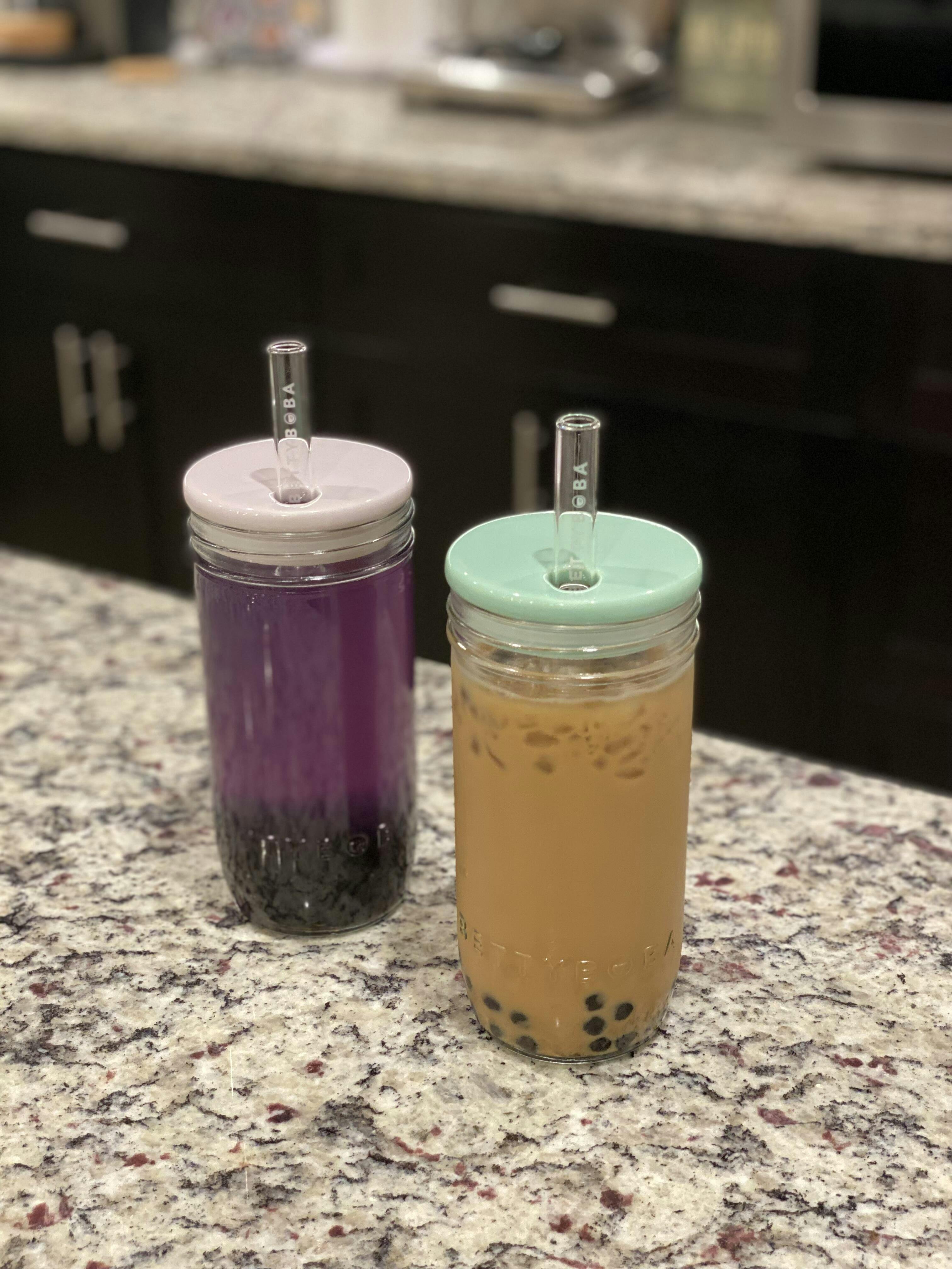 Save $25 when you get 4 tumblers! One for home, one for work/school, one for the car, and one for a friend ;) Each complete plastic-free set comes with the glass jar that keeps your drinks cool (or warm), a patent pending ceramic lid with a silicon plug, a glass boba straw that makes everything taste better, and a large straw cleaning brush, all designed perfectly for each other. Each piece is dishwasher safe for easy care.