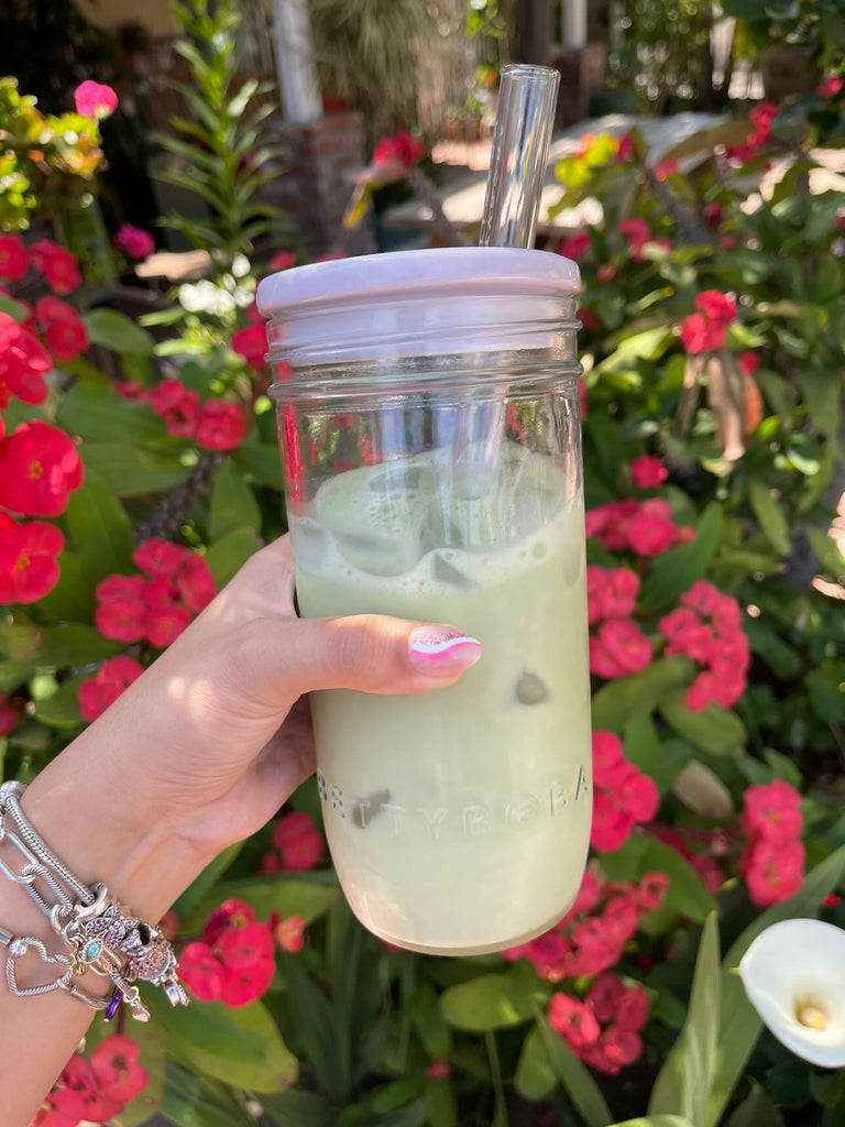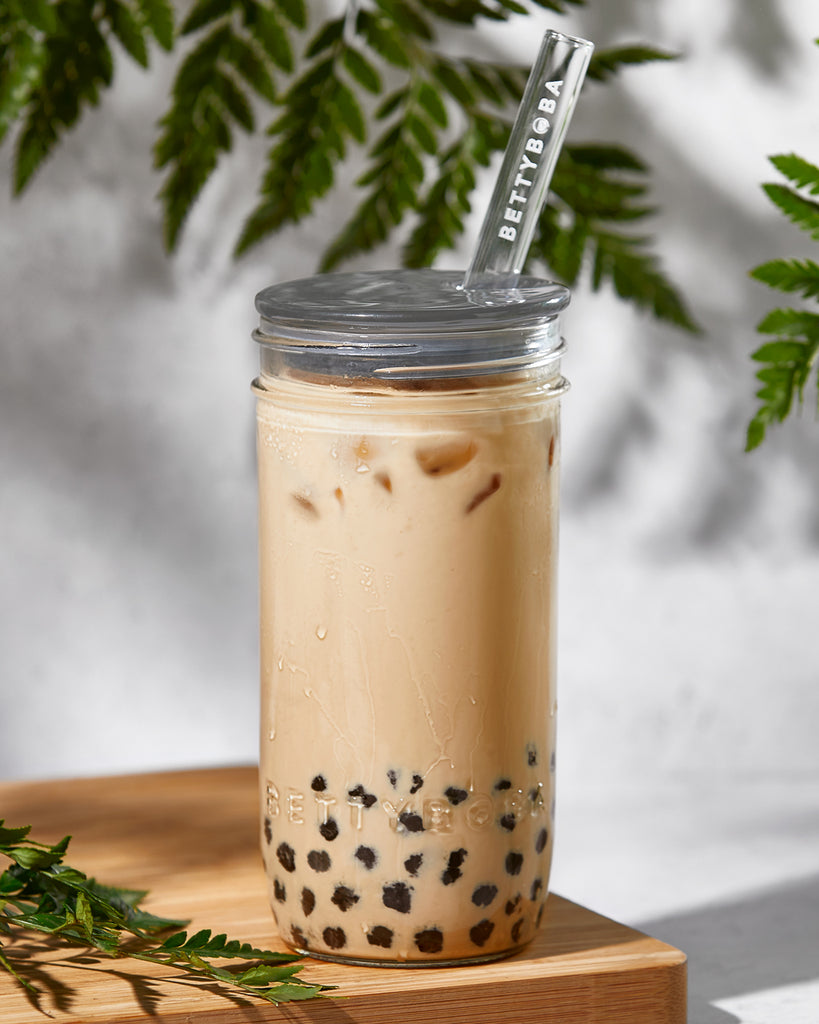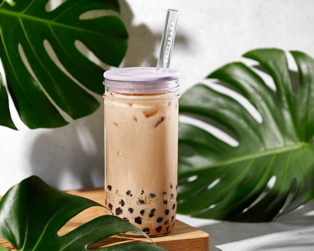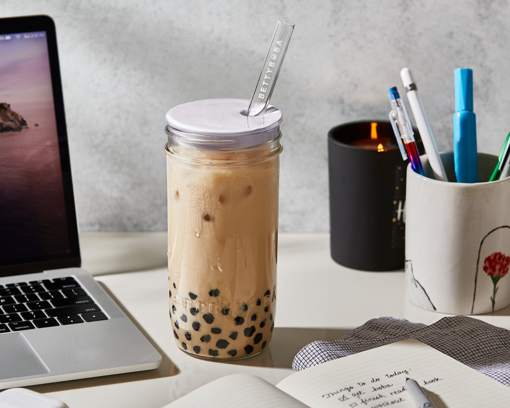 Save $25 when you get 4 tumblers! One for home, one for work/school, one for the car, and one for a friend ;) Each complete plastic-free set comes with the glass jar that keeps your drinks cool (or warm), a patent pending ceramic lid with a silicon plug, a glass boba straw that makes everything taste better, and a large straw cleaning brush, all designed perfectly for each other. Each piece is dishwasher safe for easy care.
